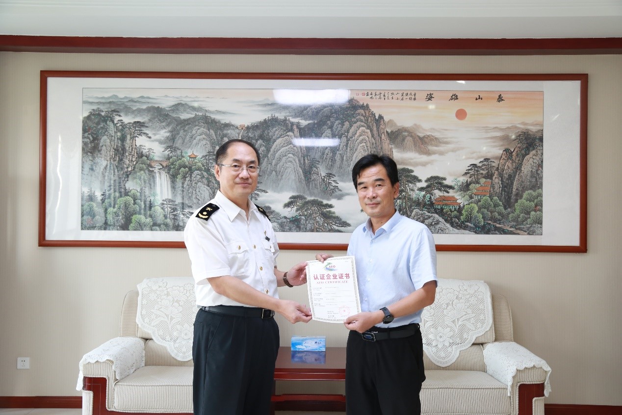 9月8日,濟(jì)南海關(guān)姜銘副關(guān)長(zhǎng)親自將海關(guān)AEO認(rèn)證高級(jí)認(rèn)證證書(shū)遞到了公司董事長(zhǎng)苗得足的手中,標(biāo)志著瑞陽(yáng)制藥正式成為中國(guó)海關(guān)AEO高級(jí)認(rèn)證企業(yè)。