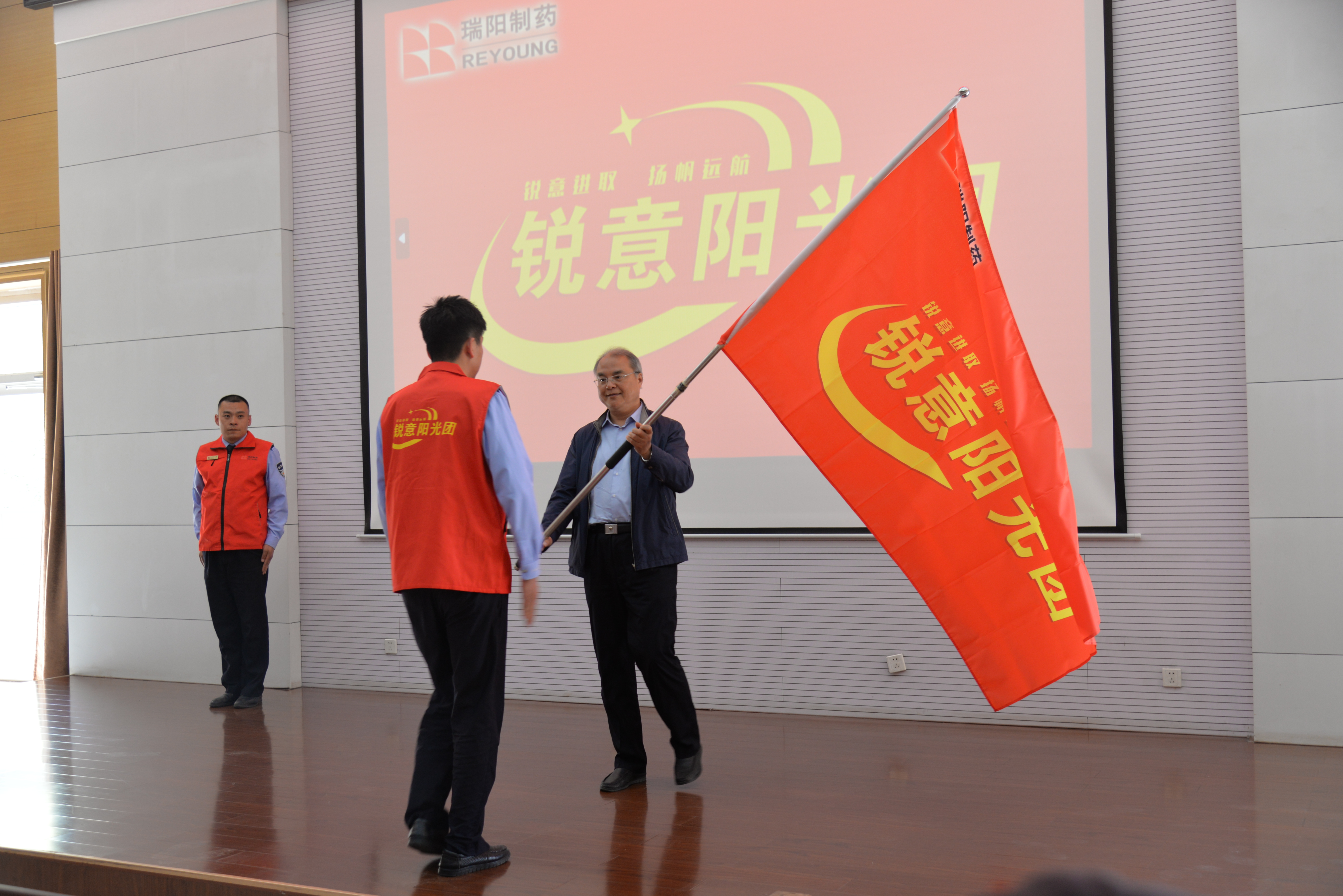 ? 開班儀式以李大釗《奮斗》《青春》主題短片拉開帷幕,澎湃的臺詞點燃現場激情。張總在致辭中對青年員工提出殷切期望,青年員工承載著企業發展的未來,作為其中的代表,希望你們你們以初生牛犢不怕虎的闖勁破解難題,用越是艱險越向前的韌勁擔當使命,在崗位實踐中實現個人價值與企業發展的同頻共振。隨后,張總為銳意陽光團授旗,全體隊員高舉右拳莊嚴宣誓:“為青春喝彩,讓夢想啟航,攜手共進、共創輝煌!”鏗鏘誓言響徹會場,彰顯出青年員工昂揚向上的理想信念和熱血奮斗的堅強決心。